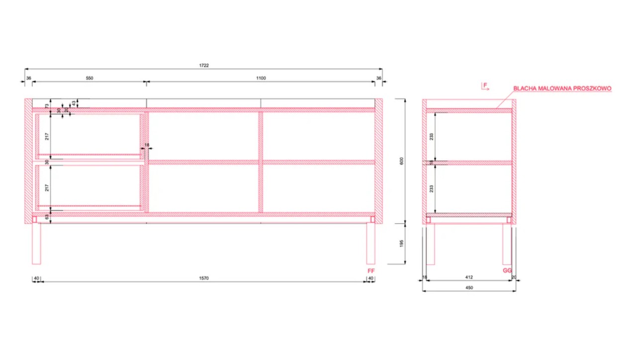 Dodatkowa blacha na pokrycie górnej części komody – będzie ona pomalowana w tym samym kolorze co stelaż z nogami