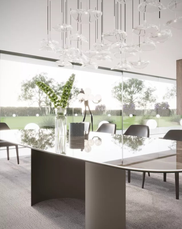 ESSO to stół, który łączy nowoczesne materiały, zaawansowaną konstrukcję i wyrafinowany design, tworząc przestrzeń do spotkań na najwyższym poziomie.