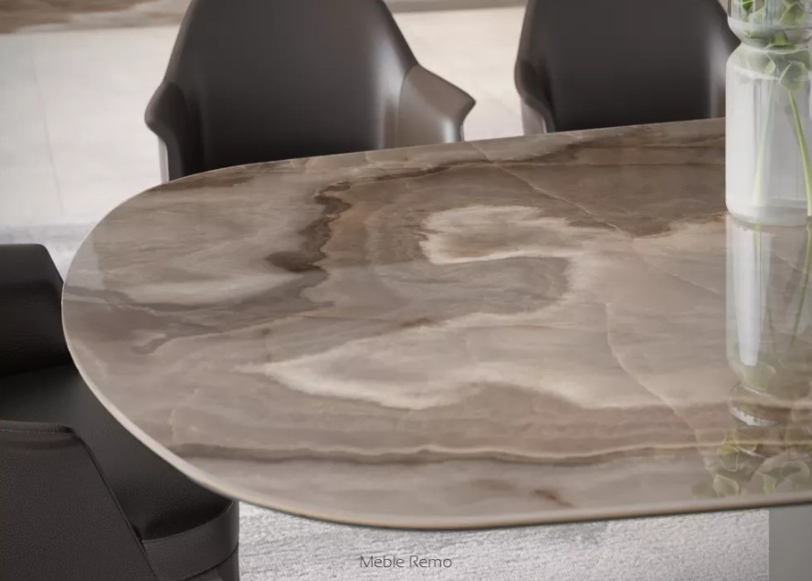 Blat wykonany ze spieku kwarcowego zachwyca nie tylko wyglądem, ale i trwałością. Odporny na zarysowania, wysoką temperaturę i codzienne użytkowanie, stanowi praktyczne rozwiązanie do jadalni i salonu. Dostępność różnych kształtów – od klasycznego prostokąta po bardziej miękkie formy, takie jak soczewka czy beczka – pozwala dopasować stół do charakteru przestrzeni. Szeroka gama struktur wykończenia dodatkowo umożliwia indywidualną konfigurację.
