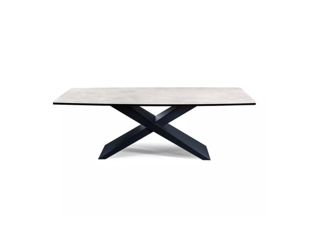 Najbardziej charakterystycznym elementem LIBERIUS jest jego podstawa – dwie metalowe nogi o krzyżującej się formie. Ich dynamiczny układ nadaje bryle lekkości i wyrazistości, jednocześnie gwarantując stabilność całej konstrukcji. Możliwość wyboru koloru z palety RAL pozwala na pełne dopasowanie stołu do aranżacji wnętrza.