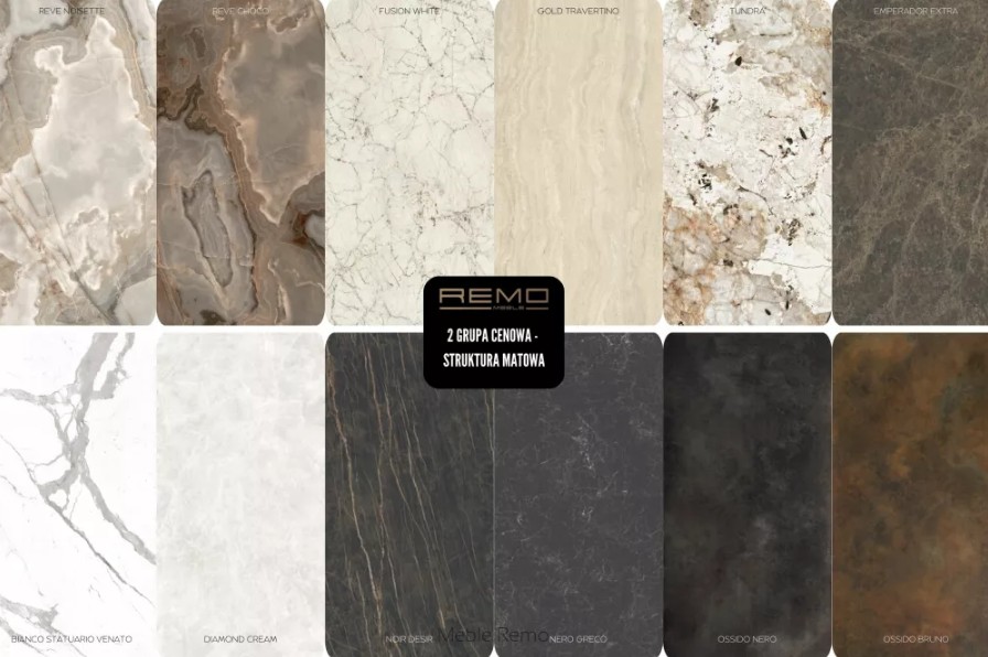 Blat wykonany ze spieku kwarcowego zachwyca trwałością i estetyką. Materiał ten, ceniony za odporność na uszkodzenia, wysoką temperaturę i łatwość pielęgnacji, dostępny jest w różnych strukturach wykończenia – od matowych, przez polerowane, aż po subtelnie fakturowane powierzchnie. Dzięki temu możliwe jest precyzyjne dopasowanie stołu do charakteru aranżacji.