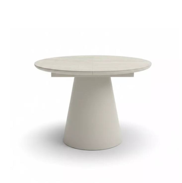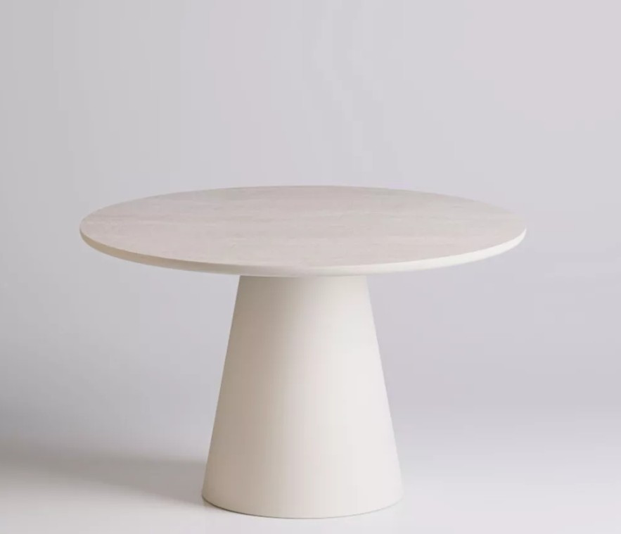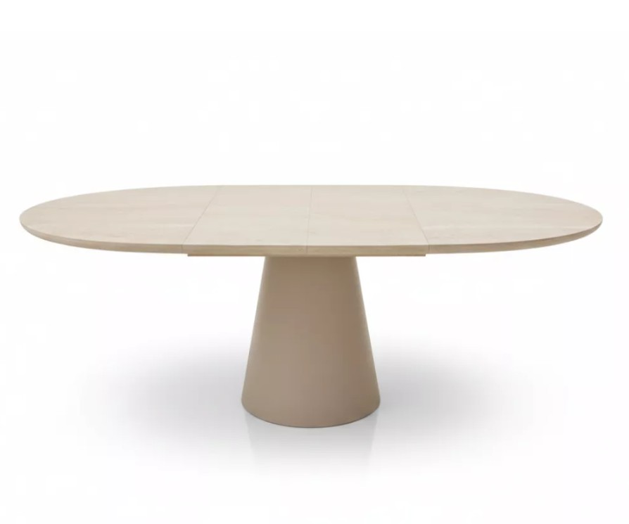 Centralnym elementem stołu jest stożkowa podstawa wykonana z malowanej proszkowo stali. Jej zwężająca się ku dołowi forma nadaje bryle dynamiki, jednocześnie gwarantując stabilność i komfort użytkowania. Możliwość wyboru koloru z palety RAL pozwala dopasować mebel do indywidualnych preferencji i stylistyki wnętrza.