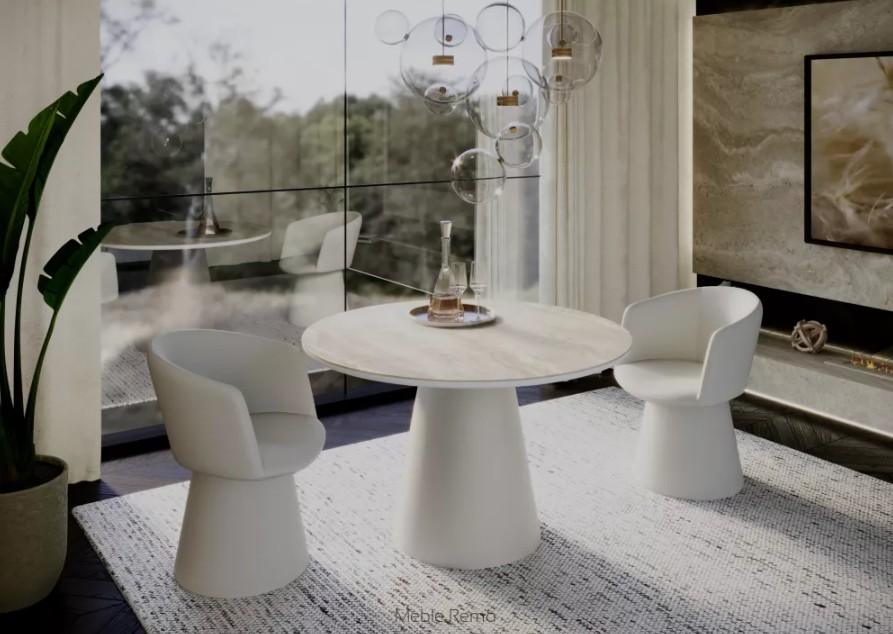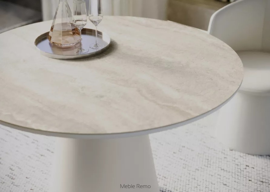 Stół MORE marki REMO MEBLE to elegancka interpretacja nowoczesnego designu, w której wyrafinowana forma spotyka się z zaawansowanymi materiałami. Jego okrągły blat i rzeźbiarska podstawa tworzą harmonijną całość, doskonale wpisującą się w ekskluzywne wnętrza.