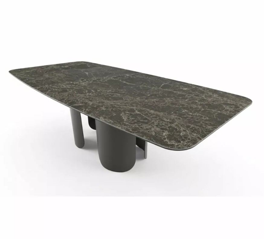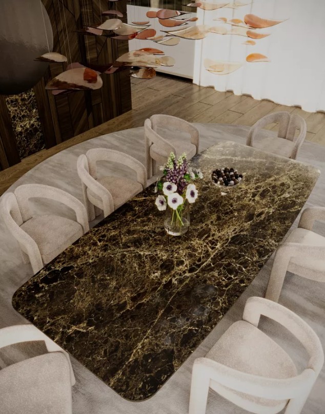 Blat wykonany ze spieku kwarcowego wyróżnia się wysoką odpornością na codzienne użytkowanie oraz estetyką inspirowaną naturalnymi strukturami. Dostępny w różnych kształtach – od klasycznych po bardziej miękkie, organiczne formy – pozwala na dopasowanie stołu do indywidualnych potrzeb i stylu wnętrza. Szeroka gama wykończeń dodatkowo podkreśla jego ekskluzywny charakter.