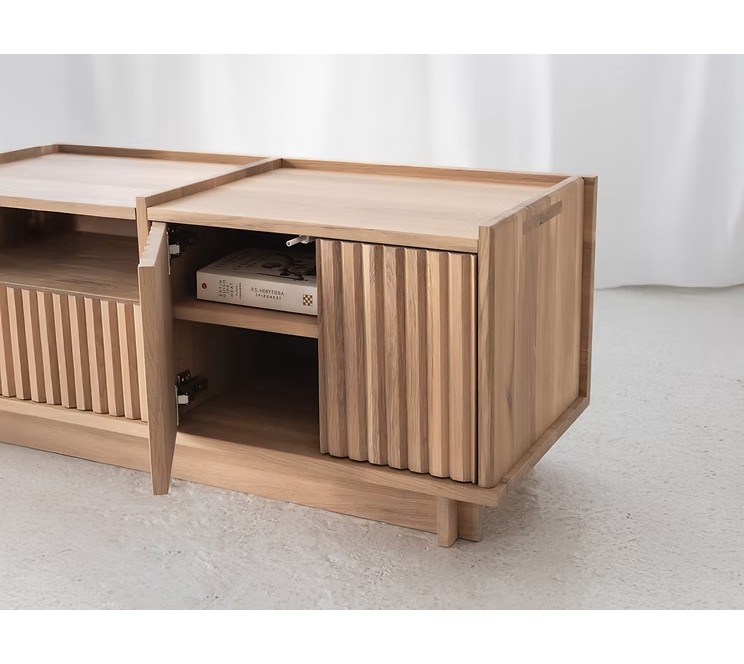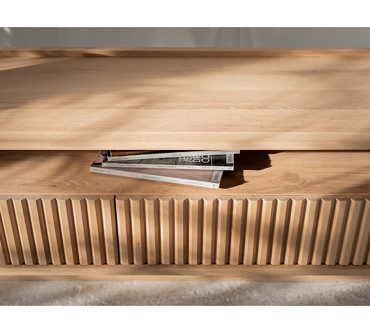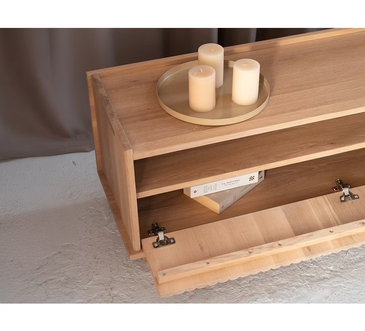 Wykonana w całości z litego drewna dębowego, TANA oferuje nie tylko estetykę, ale i solidność na lata. Przemyślana organizacja kabli pozwala zachować porządek i czystość formy, nawet w intensywnie użytkowanej przestrzeni multimedialnej.